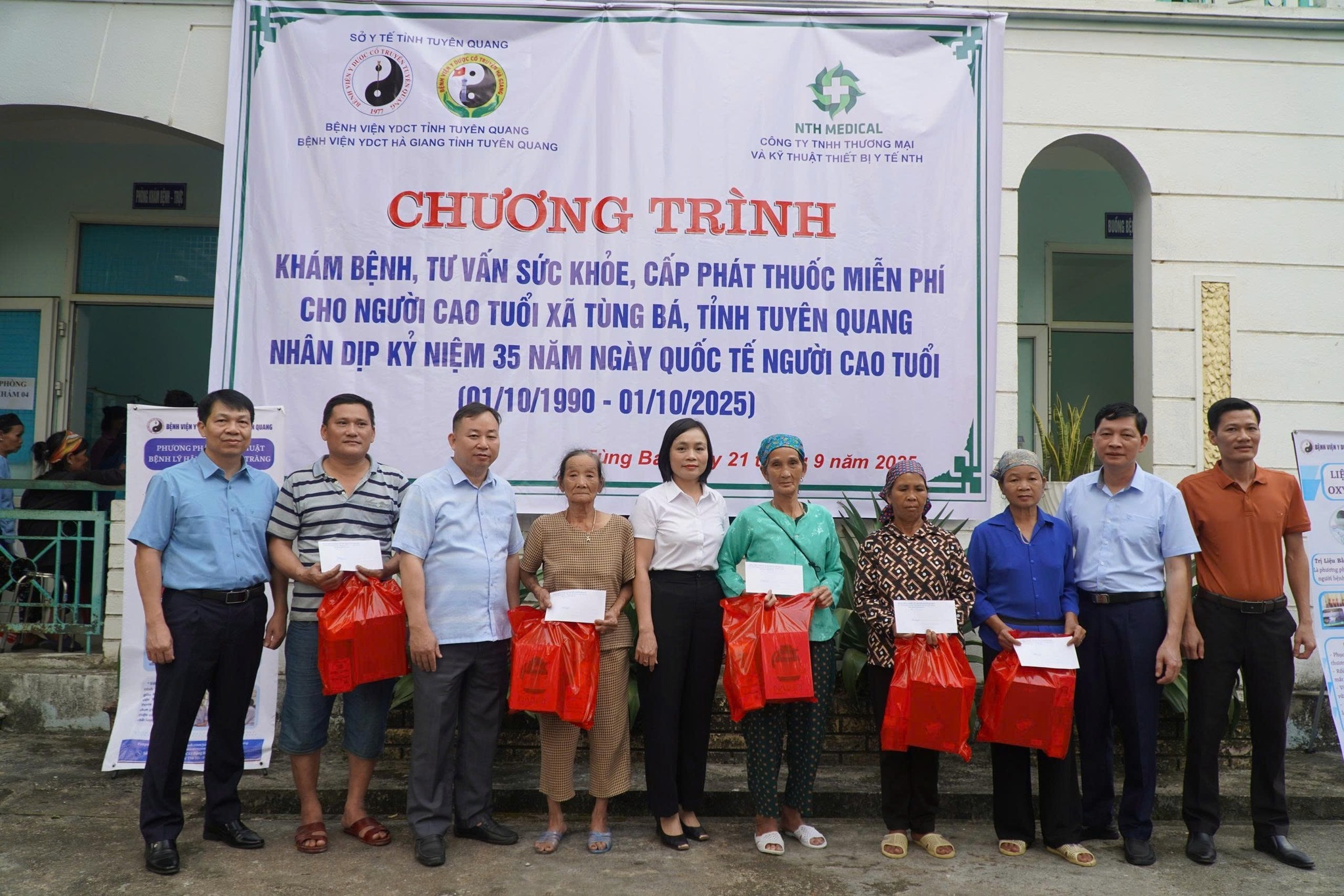 Nhân kỷ niệm 35 năm ngày Quốc tế Người cao tuổi (01/10/1990 - 01/10/2025), Bệnh viện Y dược cổ truyền tỉnh Tuyên Quang phối hợp cùng Bệnh viện Y dược cổ truyền Hà Giang tỉnh Tuyên Quang và Công ty TNHH Thương mại và Kỹ thuật thiết bị y tế NTH đã tổ chức chương trình khám bệnh, tư vấn sức khỏe, cấp phát thuốc miễn phí cho bà con tại xã Tùng Bá, tỉnh Tuyên Quang.