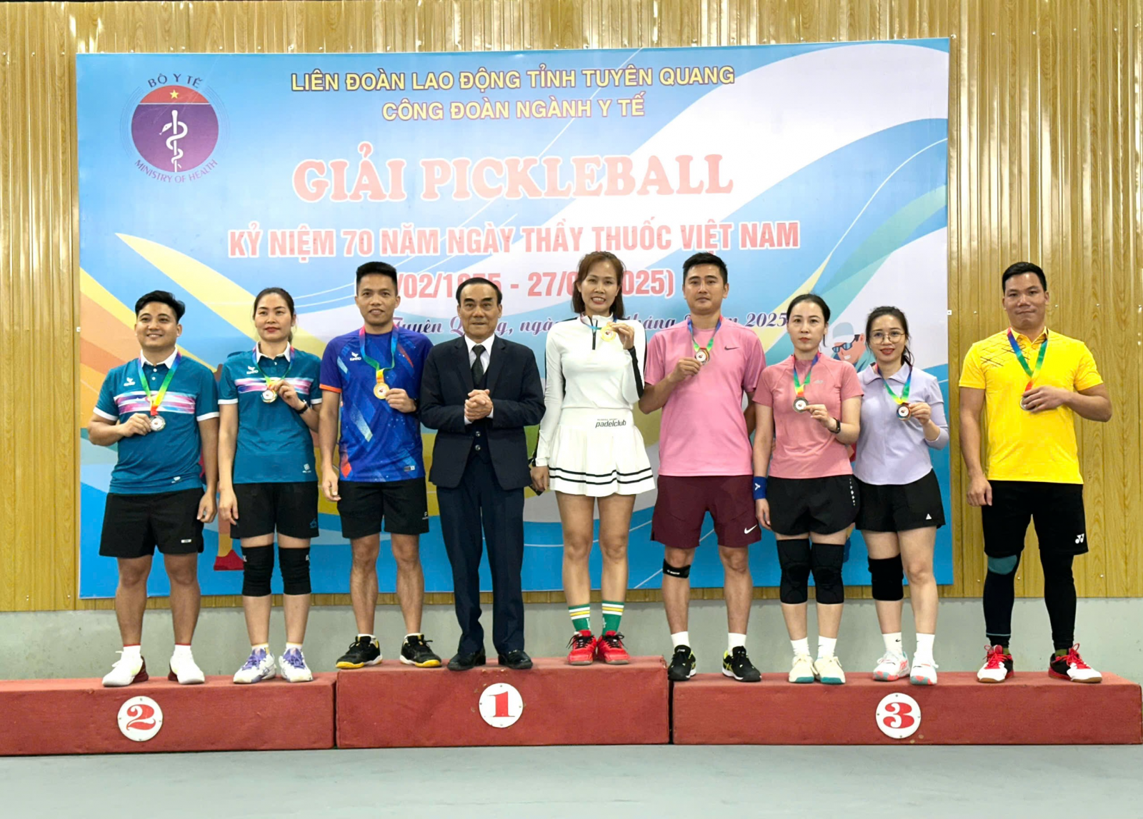 Giải thi đấu Pickleball Nhân dịp kỷ niệm 70 năm Ngày Thầy thuốc Việt Nam 27/2 đã diễn ra sôi nổi với sự tham gia của nhiều đơn vị y tế trong tỉnh. Trong đó, Bệnh viện Y Dược Cổ truyền Tuyên Quang đã xuất sắc giành giải Nhất nội dung đôi nam nữ dưới 40 tuổi.