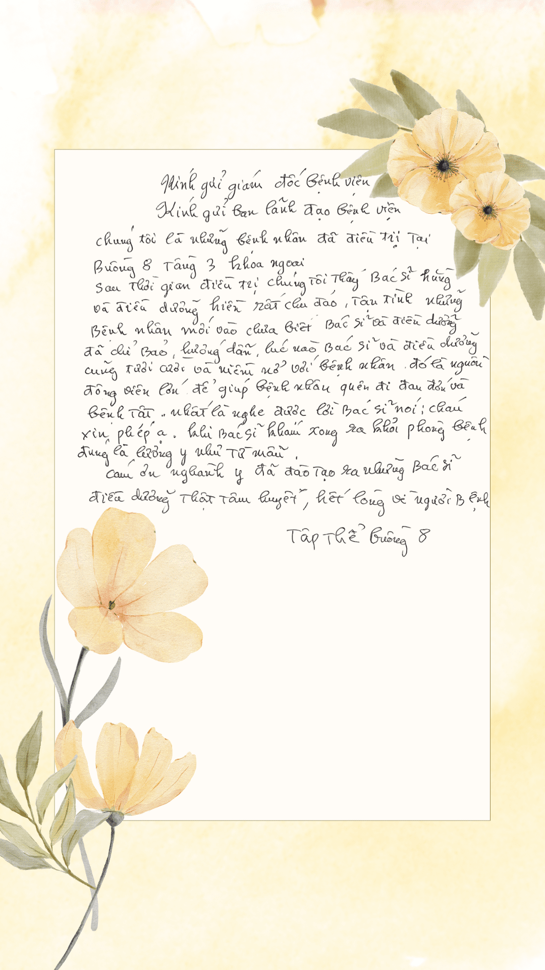 Những bức thư mộc mạc, giản dị nhưng chan chứa tình cảm và lời cảm ơn chân thành của người bệnh chính là nguồn động viên vô cùng quý giá, tiếp thêm năng lượng tích cực cho đội ngũ y bác sĩ, điều dưỡng và toàn thể nhân viên Bệnh viện. ❤️