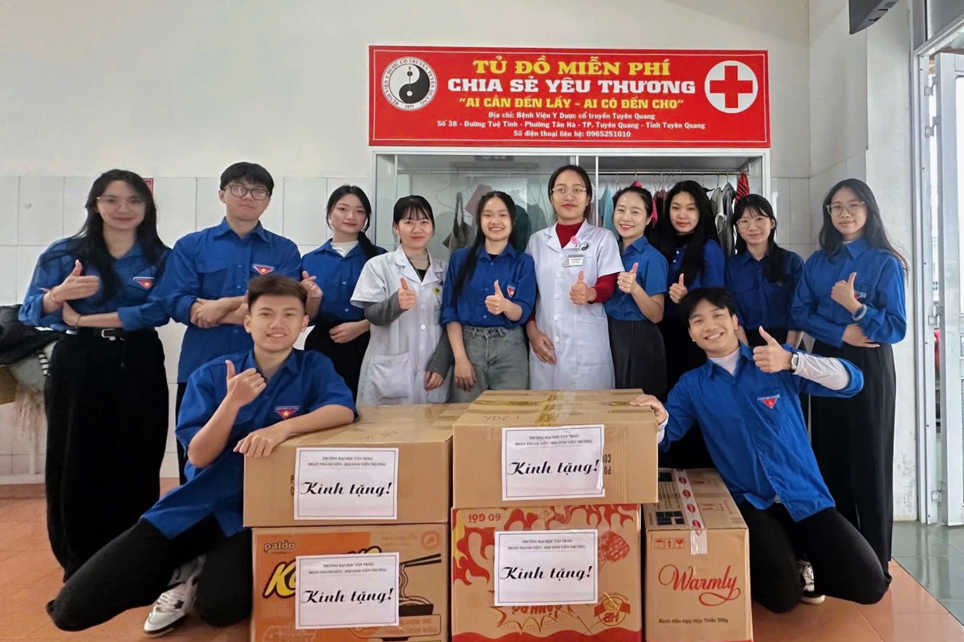 Hưởng ứng Chiến dịch “Tình nguyện mùa Đông 2025 – Xuân tình nguyện 2026”, vừa qua, Câu lạc bộ Y Dược Trường Đại học Tân Trào đã đến trao tặng quần áo ấm cho người bệnh và Tủ quần áo miễn phí tại Bệnh viện Y dược cổ truyền tỉnh Tuyên Quang, góp phần sẻ chia khó khăn với người bệnh trong những ngày đông giá rét.